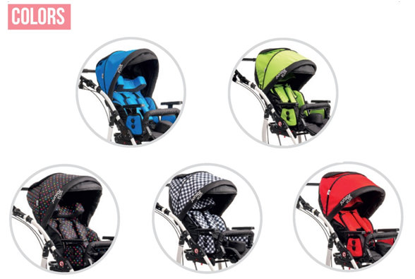 - Спинка, сиденье, подголовник, абдуктор и козырек обтянуты мягкими съемными чехлами, что облегчает уход за коляской.
