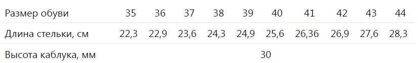 Таблица размеров: